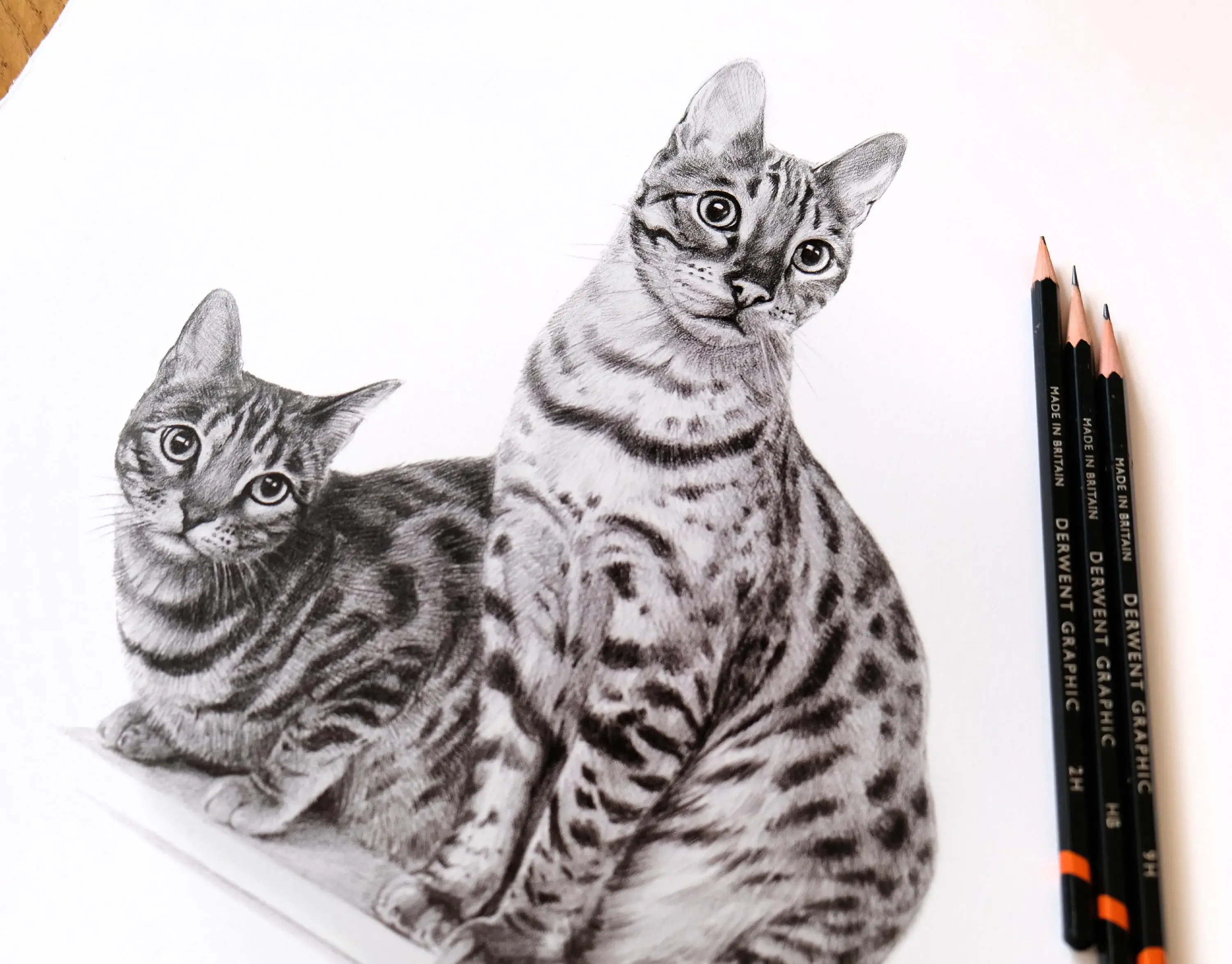 Preserve your beloved pet's memory forever with a custom memorial portrait. Welcome to my pencil pet portraits gallery. All of the pencil pet portraits below have been hand-drawn by myself. I am very lucky to be able to sit at my drawing desk every day and draw clients' dogs, cats, and horses. I have collated a few of my personal favorite pencil portrait commissions here from over the last few years.